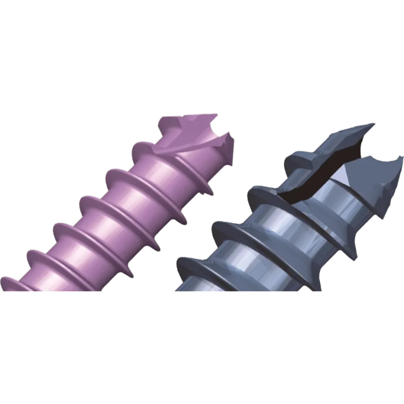 - eine „3A“-Schraube mit differenzierter Steigung, die selbstschneidend, selbstbohrend und selbstkomprimierend ist,