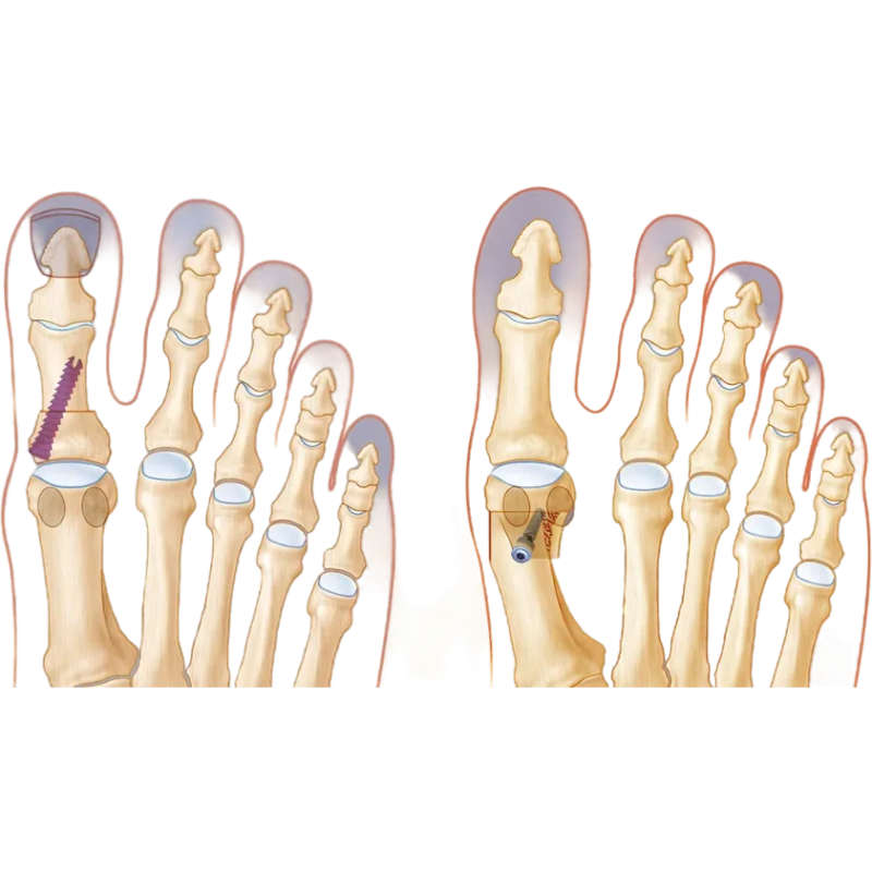 Dieselben Schrauben werden zur Fixation von Metatarsal- und Phalangenosteotomien verwendet.