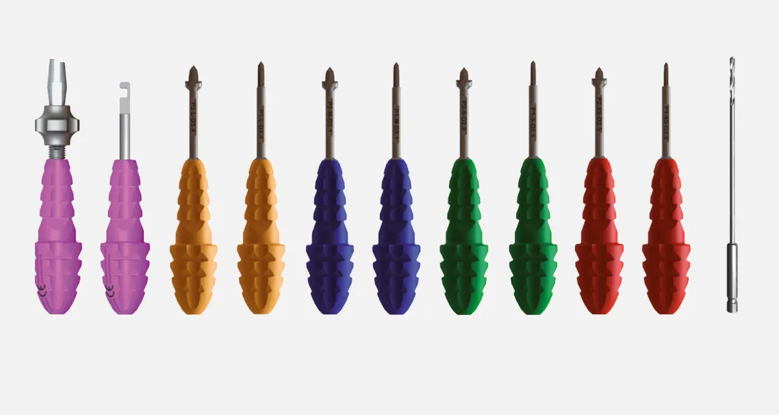 Entwickelt, um sich der Phalangenanatomie anzupassen, mit einer Auswahl von 12 Implantaten: